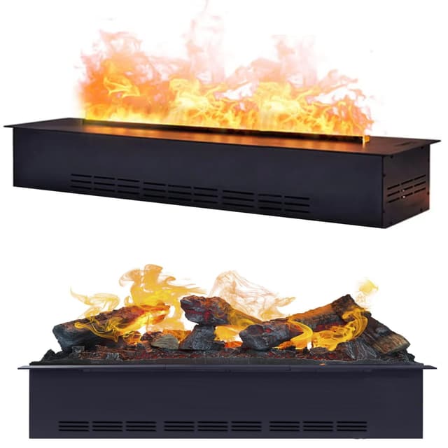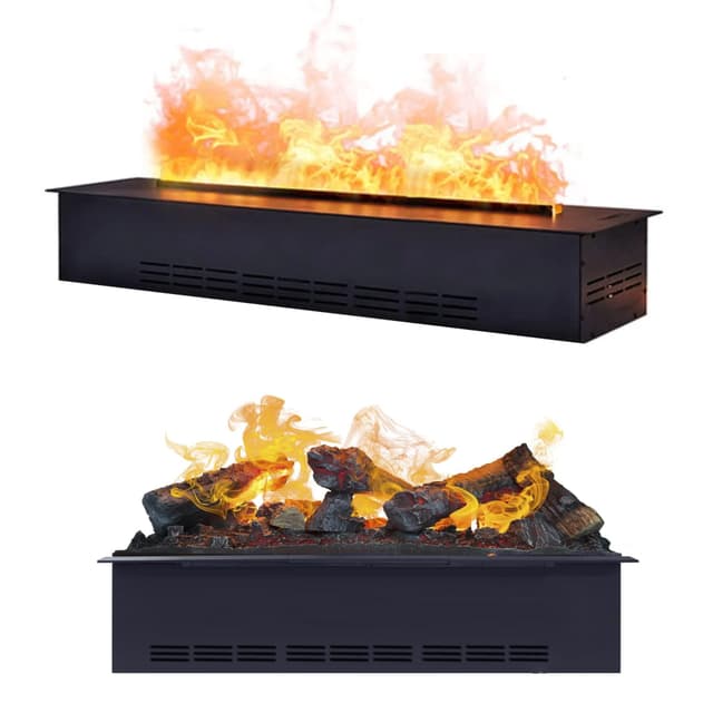 - Gerçekçi 3D alev efekti: Su buharı + LED ile odunlu şömine görünümü.