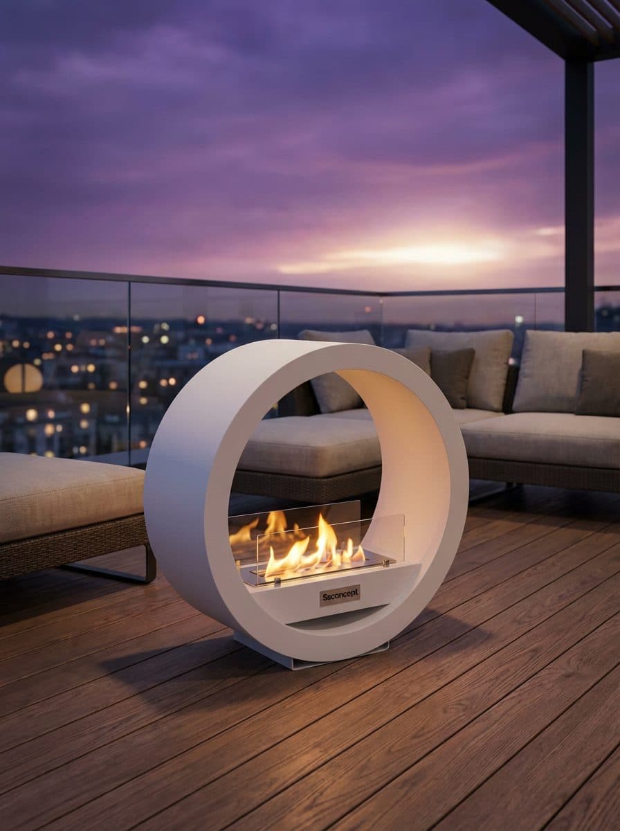 LunaFire Taşınabilir Şömine (Beyaz) - Hediyelik Masa Şöminesi, Dekoratif Yapay Şömine, Bioethanol Bacasız Şömine SsConcept.