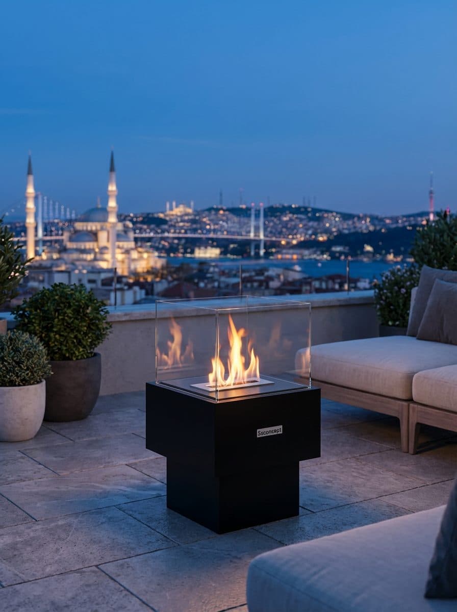 Temple Taşınabilir Şömine - Hediyelik Masa Şöminesi, Dekoratif Yapay Şömine, Bioethanol Bacasız Şömine SsConcept.