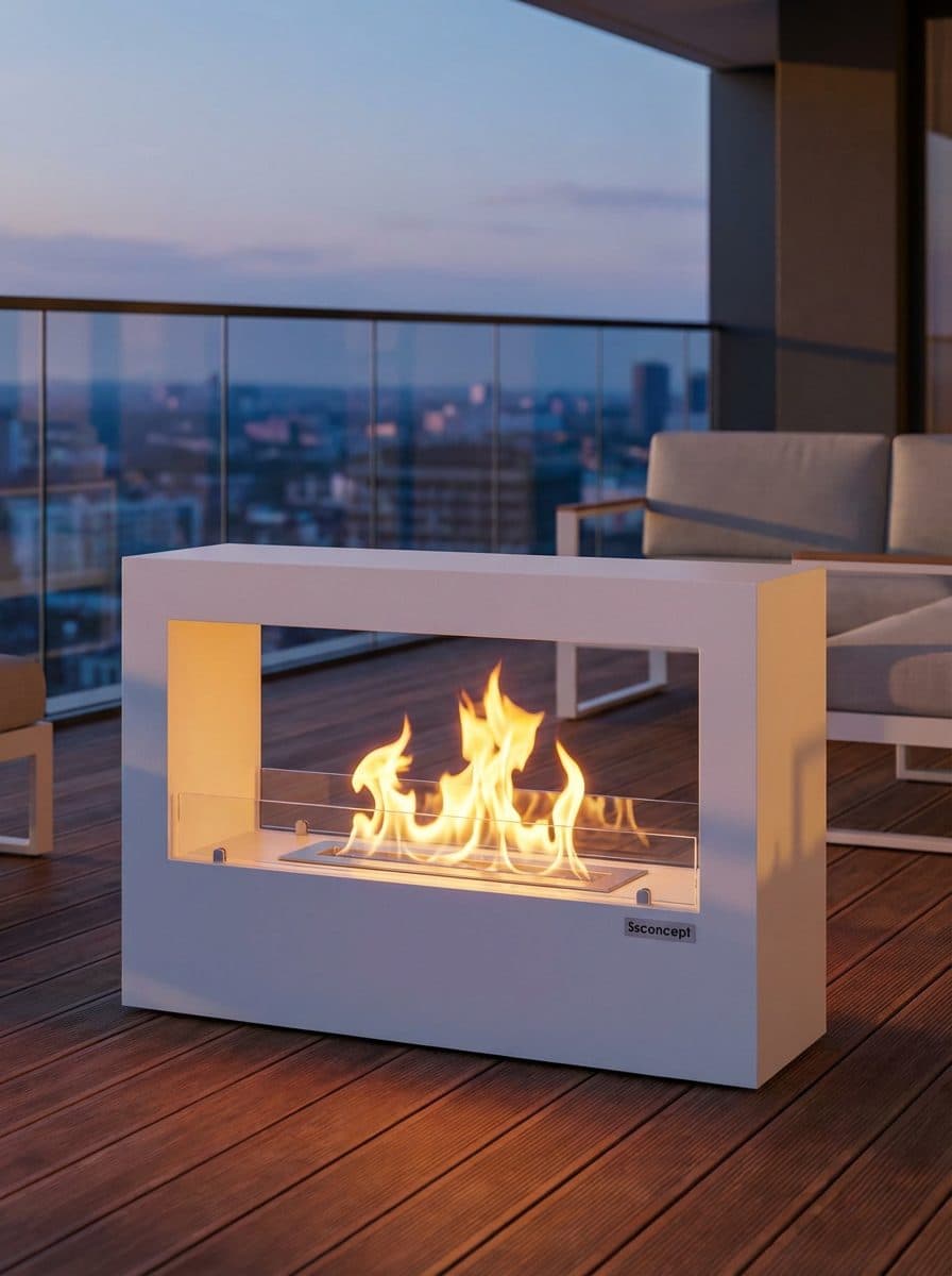 VistaFire Taşınabilir Şömine (Beyaz) - Hediyelik Masa Şöminesi, Dekoratif Yapay Şömine, Bioethanol Bacasız Şömine SsConcept.